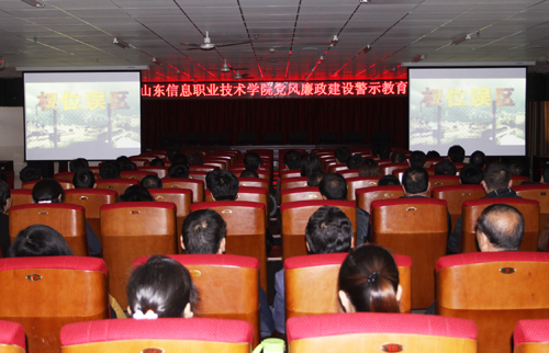 为进一步加强党风廉政建设,切实提高党员干部廉洁自律意识, 2014年4月18日下午,学院组织全体党员在图书馆5楼学术报告厅集体观看了《权位误区-北京市大兴区人大原副主任李学元腐败案警示录》、《巨贪镇长李丙春案警示录》警示教育片。