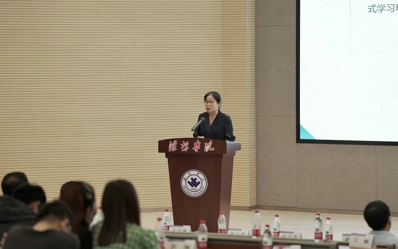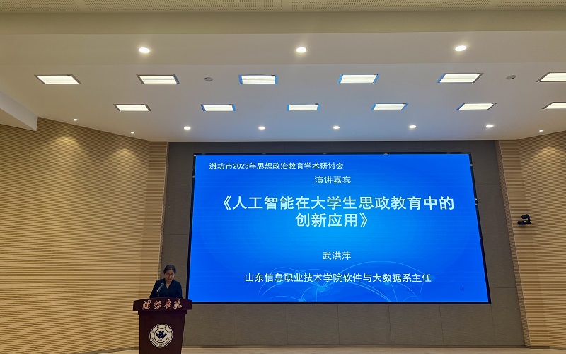 本次研讨会以“思政教育生态创新:科技变革与思政教育的时代融合”为主题,由潍坊学院与潍坊市人工智能学会联合举办。武洪萍以《人工智能在大学生思政教育中的创新应用》作主旨报告,报告围绕人工智能时代大学生思想政治教育新特征、人工智能时代大学生思想政治教育的风险挑战、基于人工智能的大学生思想政治教育创新应用三个方面展开,内容围绕思政工作实际,紧跟时代思潮的变化节奏,聚焦人工智能发展前沿,深刻阐述科技赋能思想政治教育工作的重要性。武洪萍表示,思想政治教育作为高校教育的主线,承担着对大学生的价值引领、思想引导的责任,承担着培养时代新人的使命和任务,随着人工智能技术在教育领域的深入研究和应用,作为思政教育工作者,应与时俱进,意识到人工智能技术带来的教育变革正呈迅猛之势,尽快转变和提升教育思维理念。