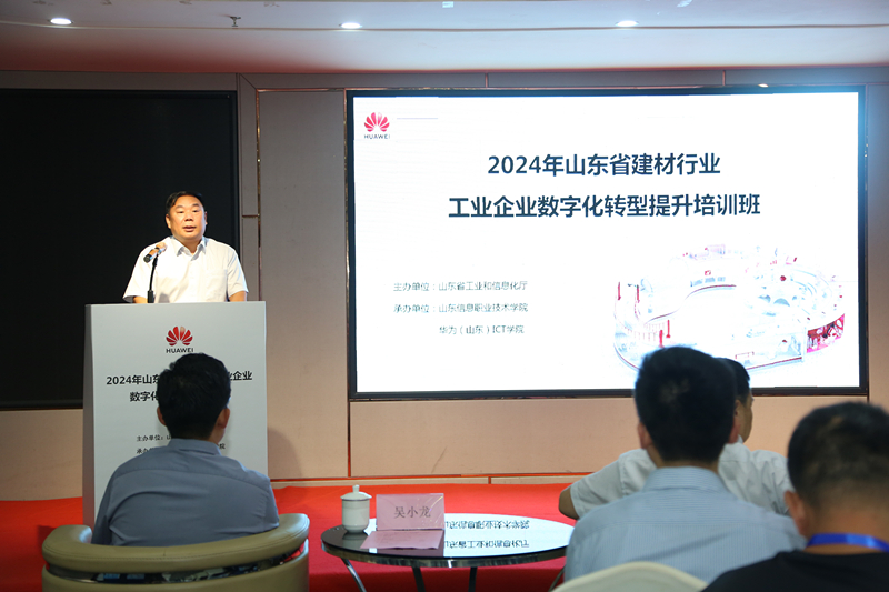为深入落实全省新型工业化推进大会精神,提升全省工业企业负责人数字化转型意识,7月30日至8月2日,由山东省工业和信息化厅主办,学校华为(山东)ICT学院承办的2024年山东省建材行业工业企业数字化转型提升培训班在哈尔滨举行。来自全省各级工业和信息化主管部门负责人、省建材协会、省水泥协会及省级以上专精特新企业负责人等50余人参加本次培训。省工业和信息化厅二级巡视员龙希江、原材料处副处长王功永、赵东升出席开班仪式。