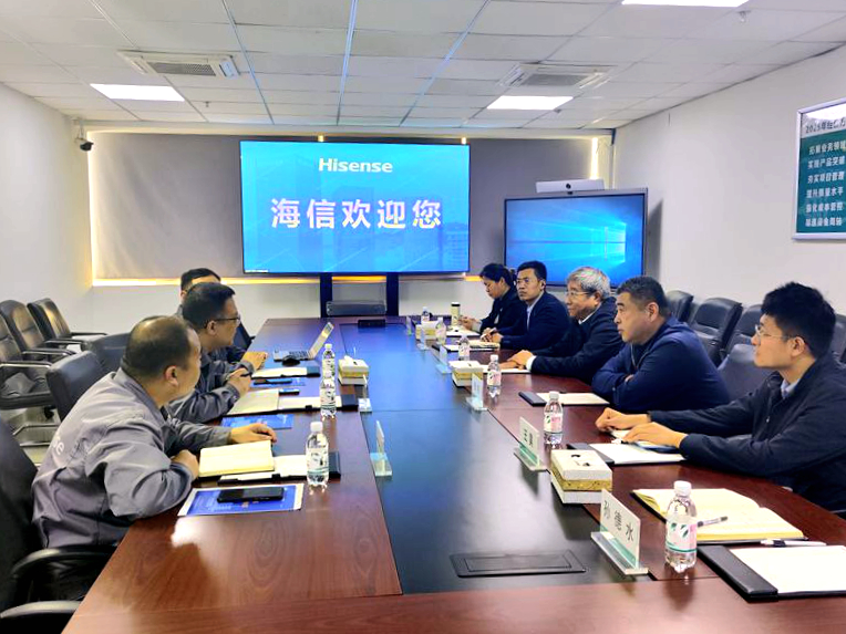 在青岛海信宽带多媒体技术有限公司,王协瑞一行参观了企业研发中心、生产车间及智能化展厅。参观过程中,企业人力资源负责人邢得永详细介绍了公司技术研发成果、产品制造流程以及智能化生产线的运作模式。