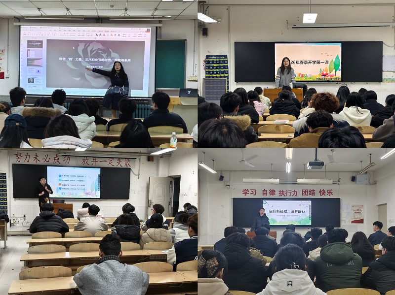 会上,各班级集中组织学生观看“开学第一课”。学校党委书记、院长丁文利围绕新学期学校发展部署、学生成长目标、安全责任落实等核心内容,对全体学生提出明确要求与殷切期望,引导学生树立远大理想、锤炼过硬本领、坚守安全底线,以饱满精神状态投入新学期学习生活,全体学生认真聆听、详细记录,深刻领会精神实质。辅导员、班主任重点围绕校园安全、学业规划、品德修养等方面进行系统教育。结合“三八”国际妇女节,在班会中融入巾帼精神教育,宣讲新时代女性榜样事迹,引导全体学生树立平等尊重的性别观念。鼓励女学生自立自强、在专业学习中锤炼本领;引导男学生学会感恩、主动关爱身边女性,共同营造文明和谐的校园氛围。