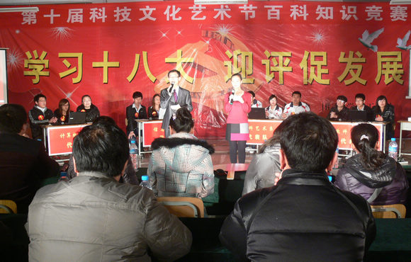 由学院团委、学生工作处组织举办的第十届科技文化艺术节“学习十八大 迎评促发展”百科知识竞赛,于12月19日晚在大学生活动中心成功举办。